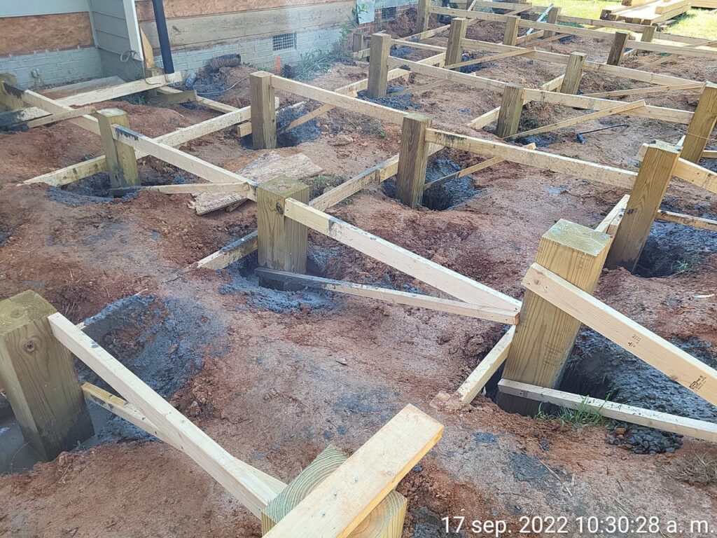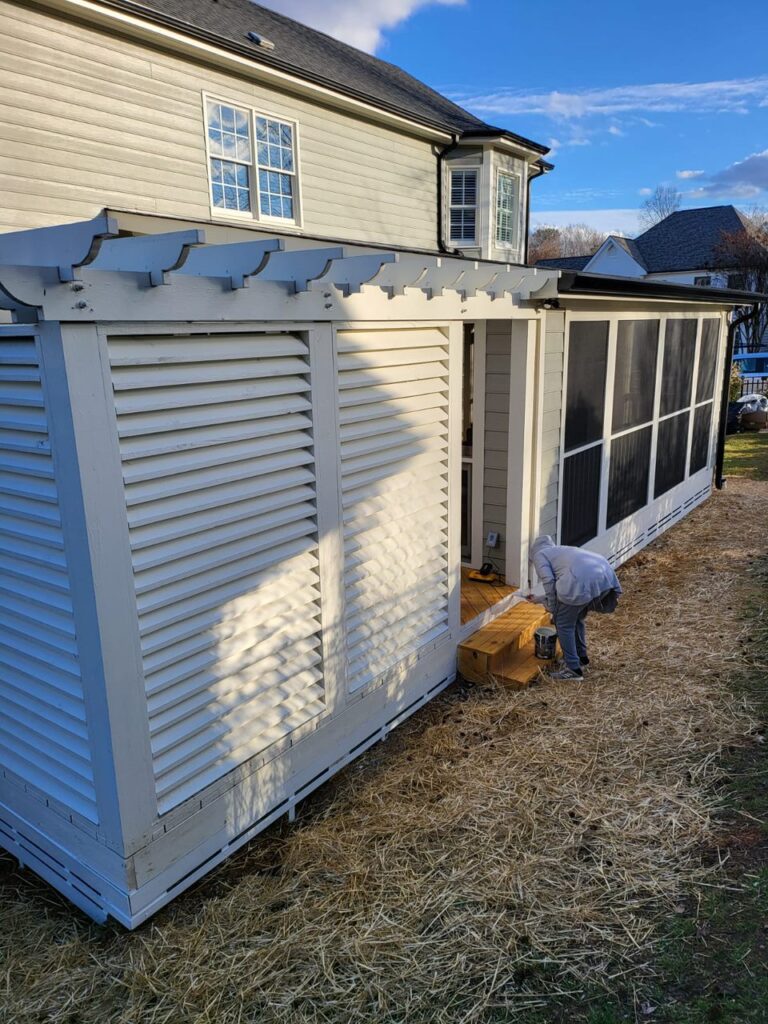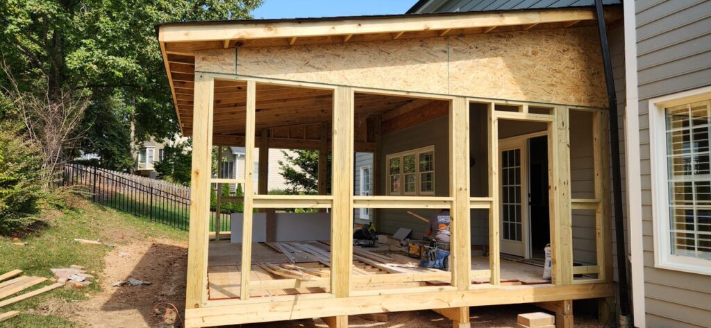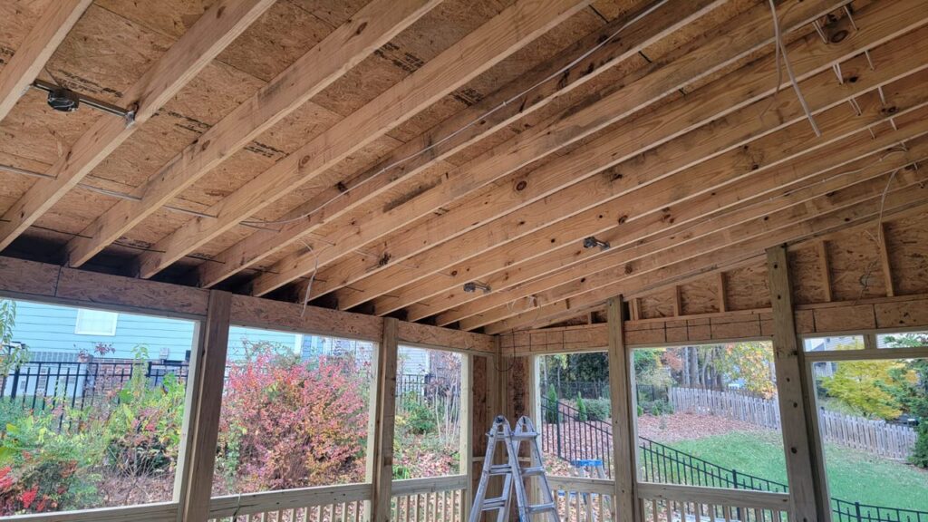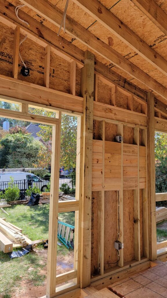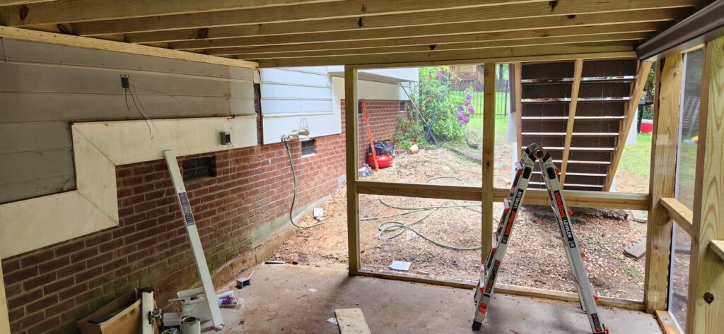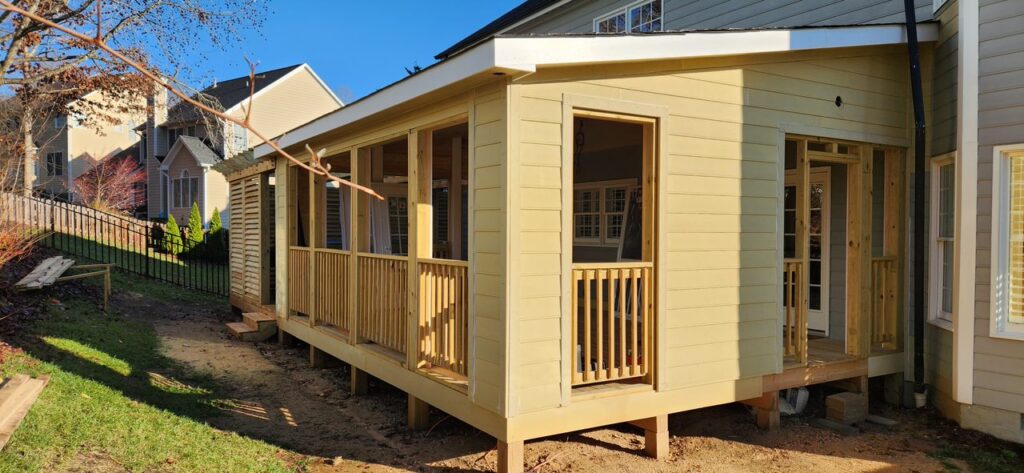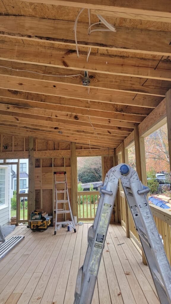 This project began as a bare backyard with nothing but open ground and the foundation layout marked for what would become a stunning new addition. Our team at Luna Restoration started from the ground up—installing the structural supports, setting posts, and preparing the base for a fully framed, enclosed porch. Every detail was measured and reinforced to ensure long-term stability, drainage, and perfect alignment with the existing home structure.